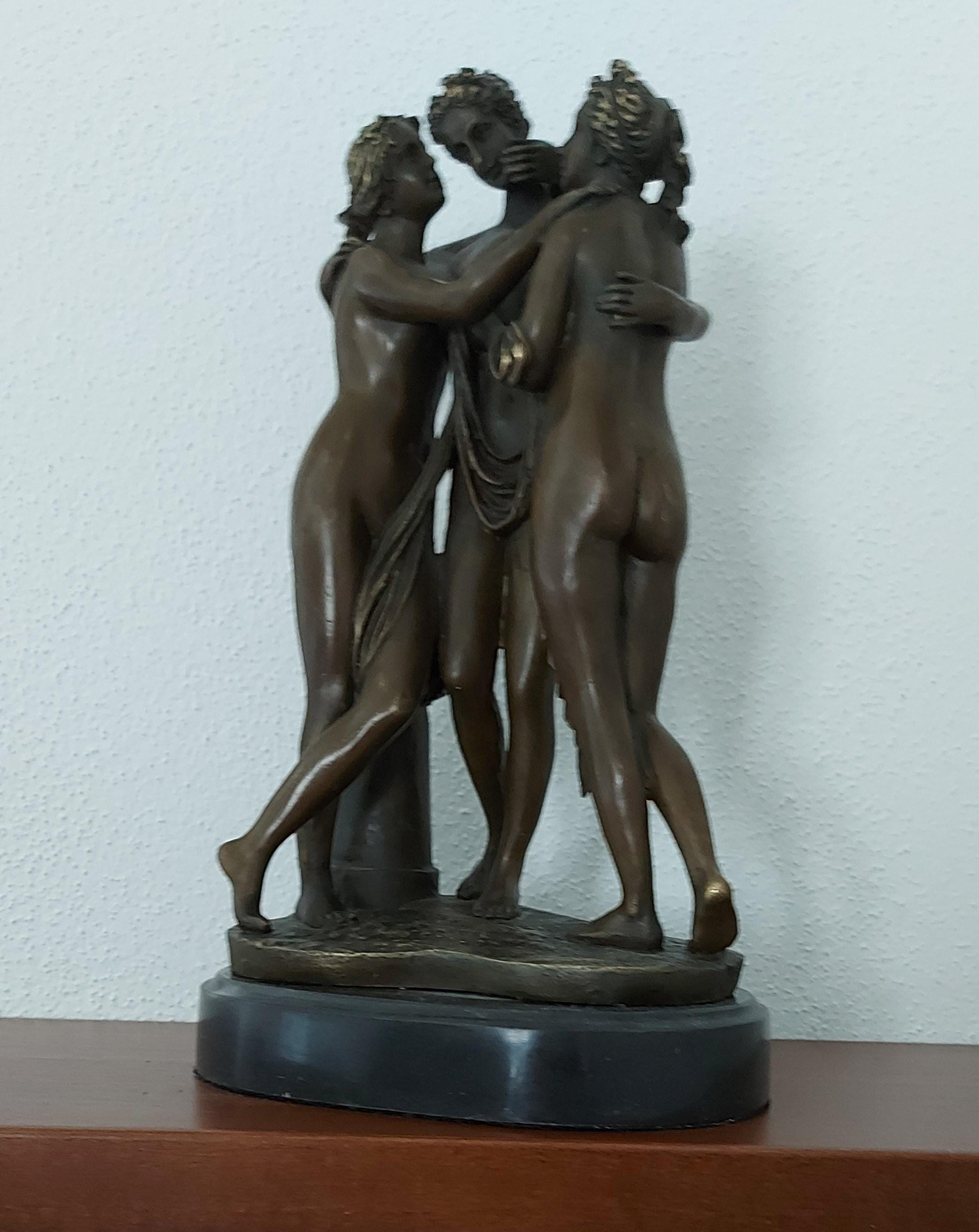 Three Graces by Canova Bronze Figurine - Statue Three Sisters - Three Nude Women - Mature Concept - Home Decor - Foundry Mark - Gift Idea