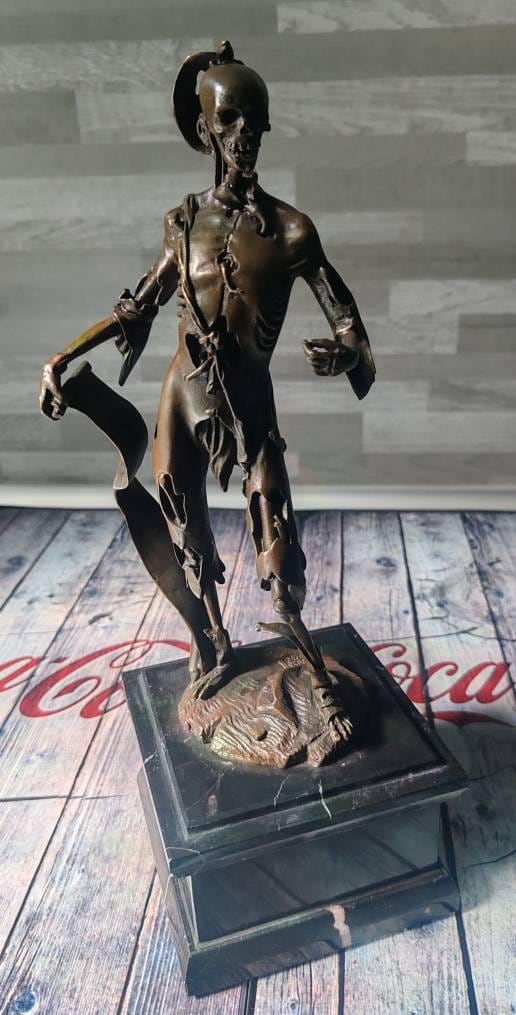 Memento Mori Bronze Sculpture - Skeleton Last Goodbye - Skeletton in Tattered - Abstract Statue on Marble Base - Unique Gift