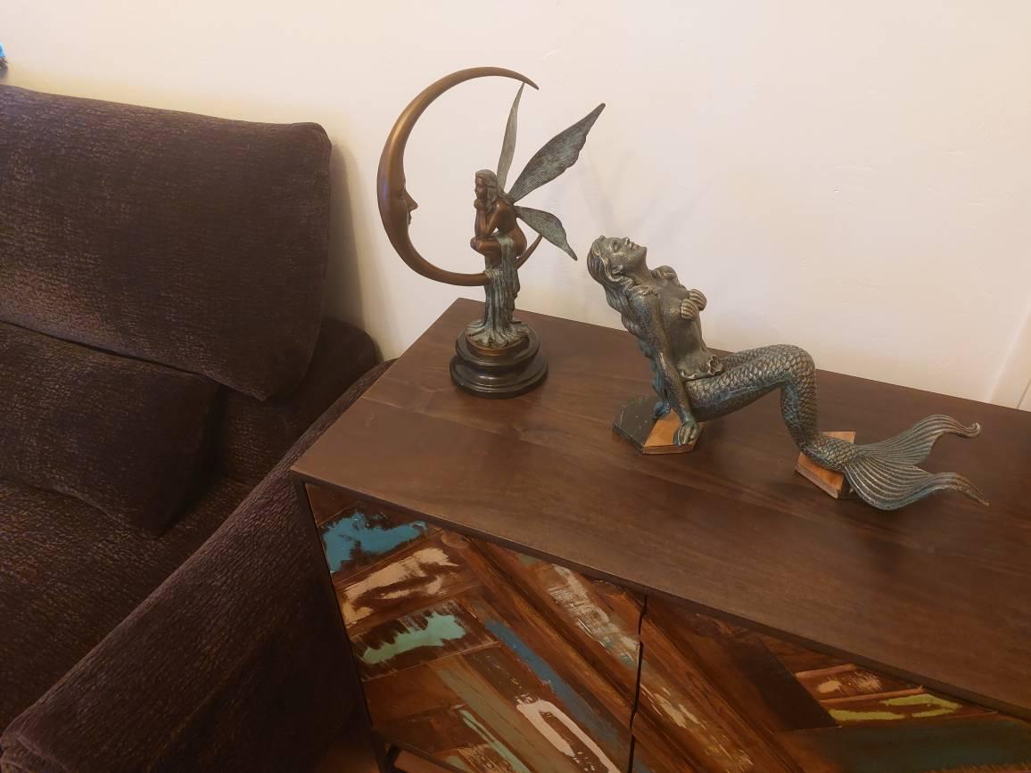 Cast Iron Mermaid Statue - Mermaid Green Patina Painted Sculpture - Elegant Home and Garden Figurie - Woman with Fins - Gift Idea
