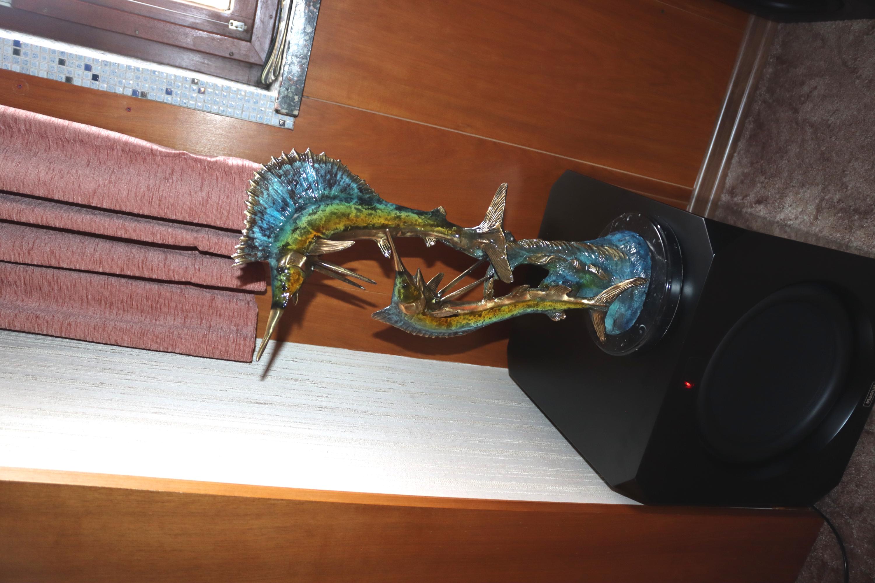 Two Large Fishes Marlins - Bronze Staute - Marlin Bronze Statue - Art Work Painted Sailfish - Gift for Fisherman - Fish Sculpture on Marble