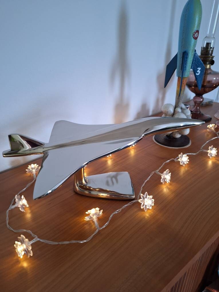 Crafted with precision, the aluminum model captures the sleek and distinctive design of the Concorde, an engineering marvel of its time. Its classic silver finish adds a touch of sophistication, making it a standout addition to any desk, shelf, or tabletop.