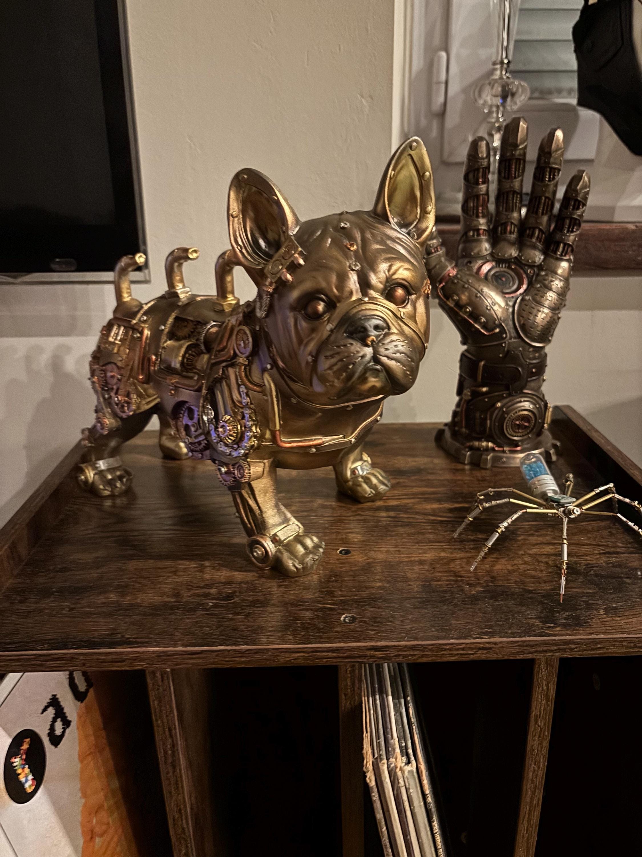 Steampunk French Bulldog - Goldene Figurine - Steampunk Robot Dog Statue - Gift Good Idea - Home Decor - Amazing Decor
