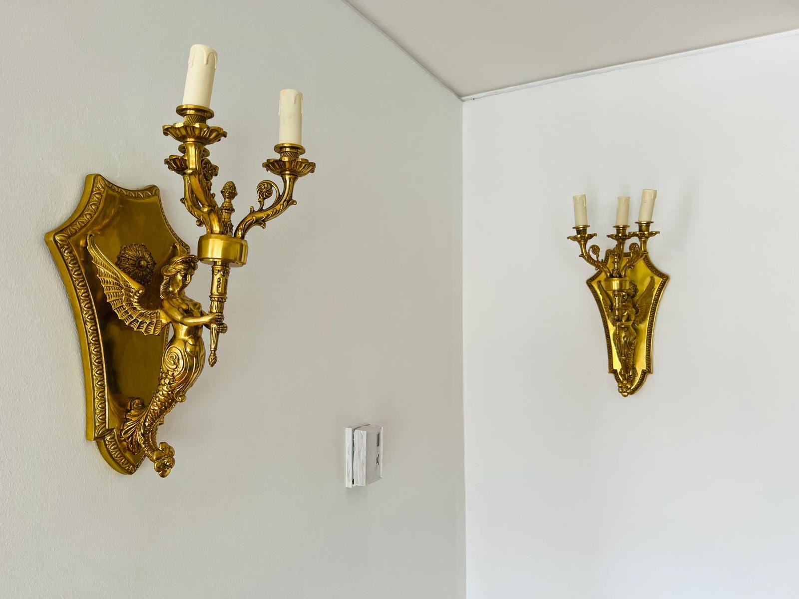 Two bronze empire wall sconces - bronze winged nymphs - pair bronze candlesticks - wall decor - wall art - candlestick bronze