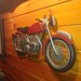 Experience the vintage charm with this very large red and black motorbike metal model, reminiscent of old-school motorcycles. This detailed model not only serves as a striking piece of wall art but also adds a touch of nostalgia to your home decor. The motorcycle features handles at the rear, adding to its authenticity and appeal as a collector's item.