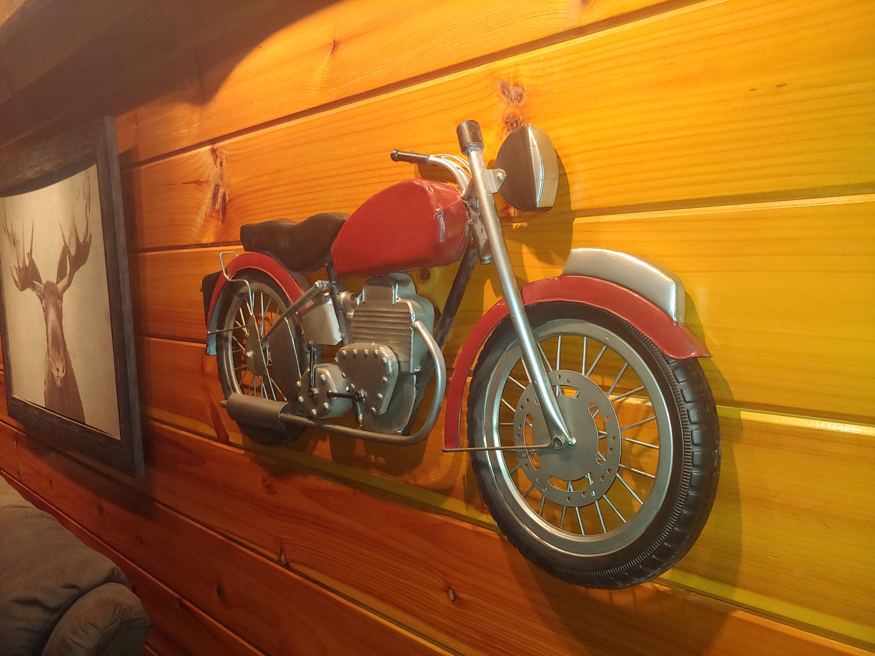 Enhance your living space with this unique and nostalgic motorcycle model, perfect for enthusiasts of vintage vehicles and collectors alike.