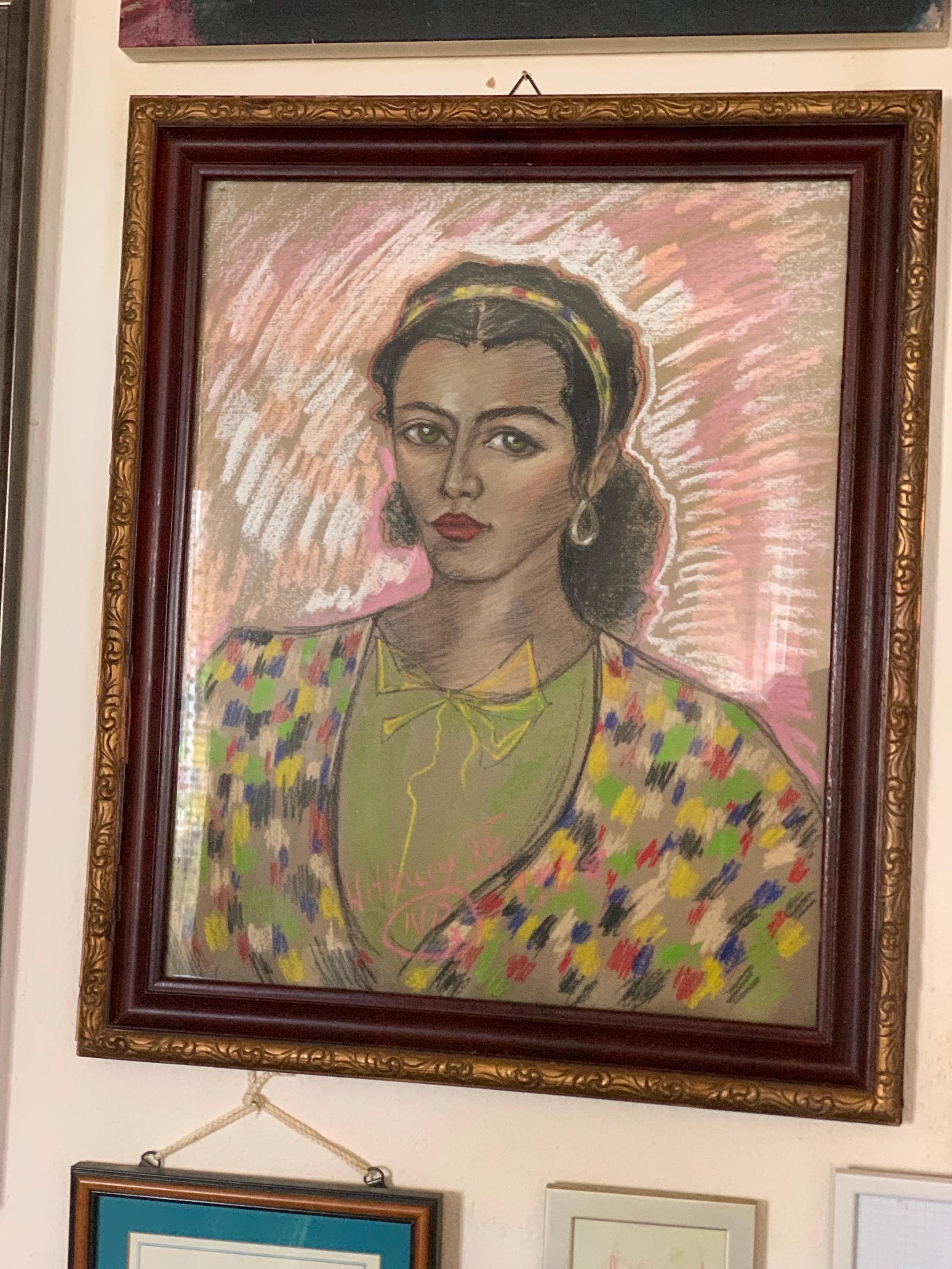 Antique Painting - Portrait Woman Witkacy 1938 - Old Painting on Carton - Drawing Pastel Art Nouveau - Home Decor - Wall Decor - Wall Art