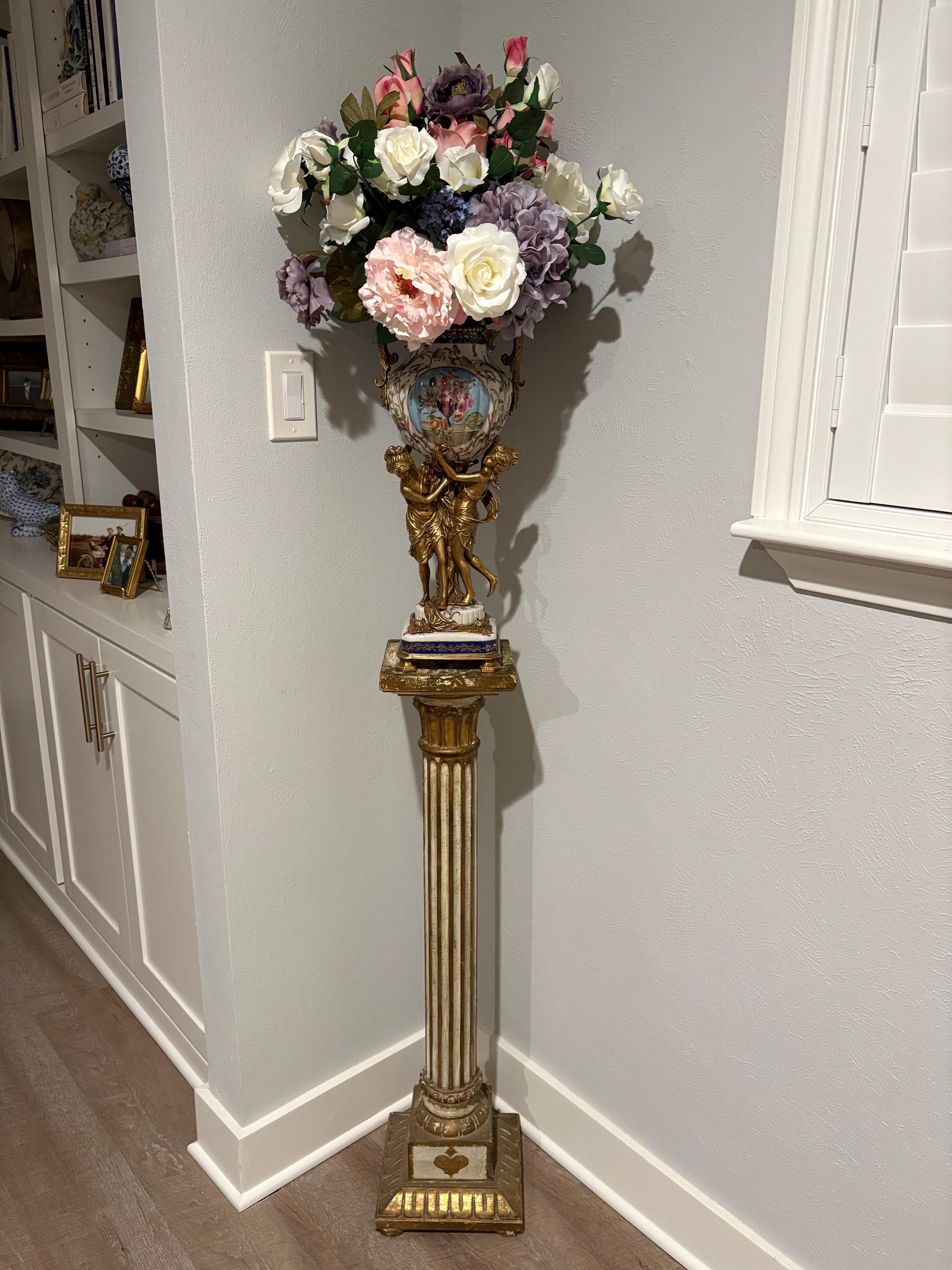 Flowers Design Large Vase with Nymphs - Amazing Porcelain Vase with Bronze Ornaments - Floral Design - Home Decor - Premium Gift for Wedding