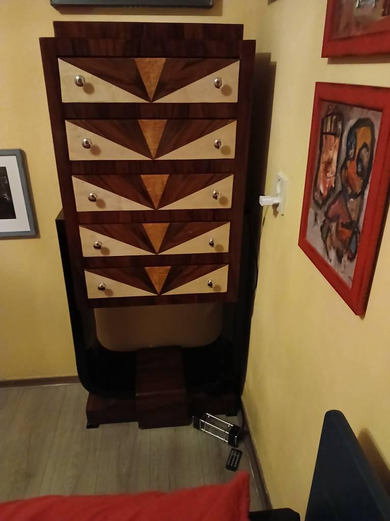 Perfect for storing clothes, books, or decorative items, this unique furniture piece will elevate any room with its classic Art Deco design.