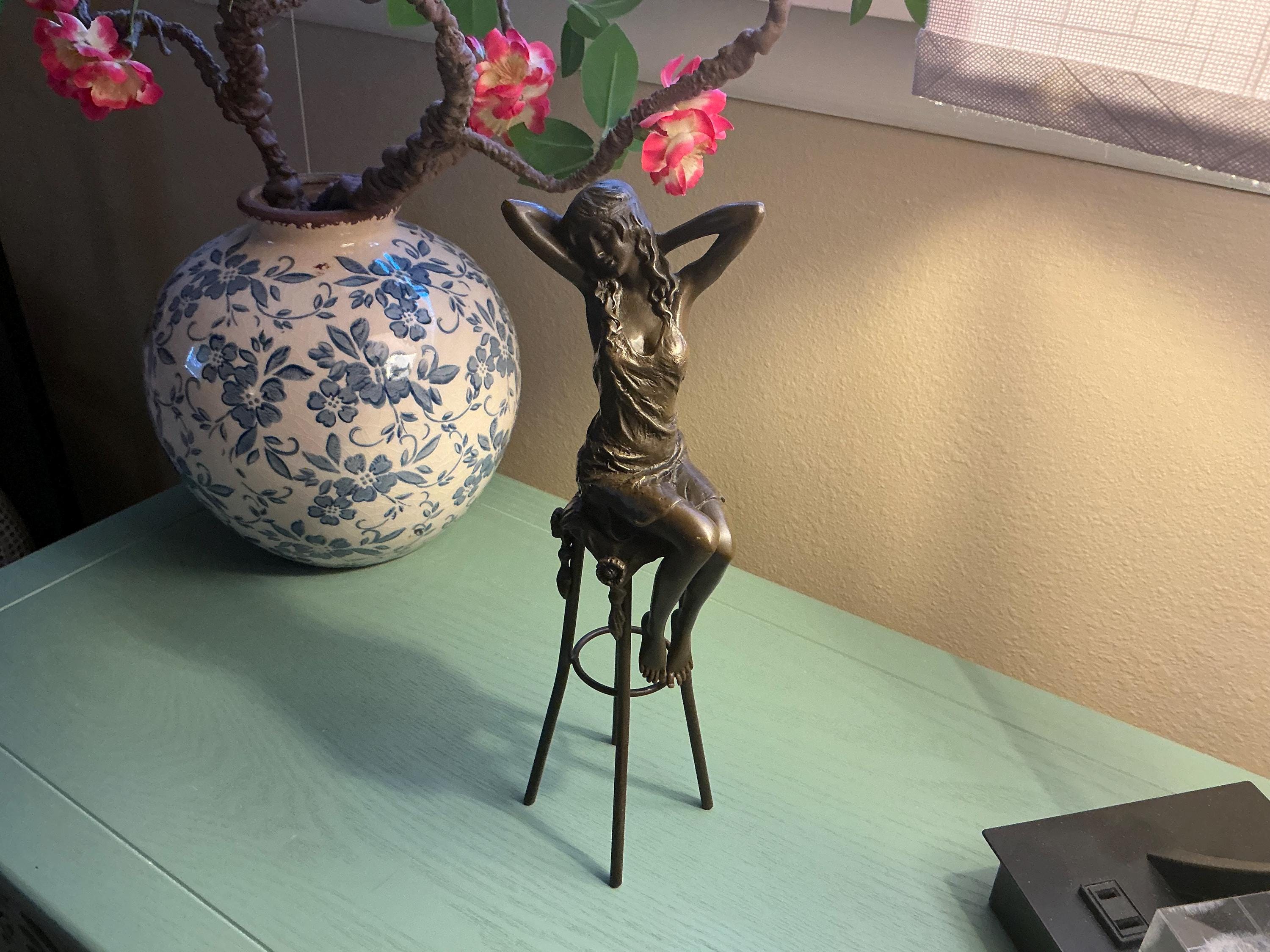 Woman act on bar chair - Bronze figurine woman in dress - act bronze statue - Gift Idea - Home Decor - Art Deco Statue